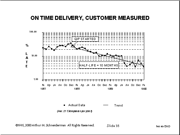 This slide showed the rapid improvement that we were achieving in our most important order fulfillment process metric.